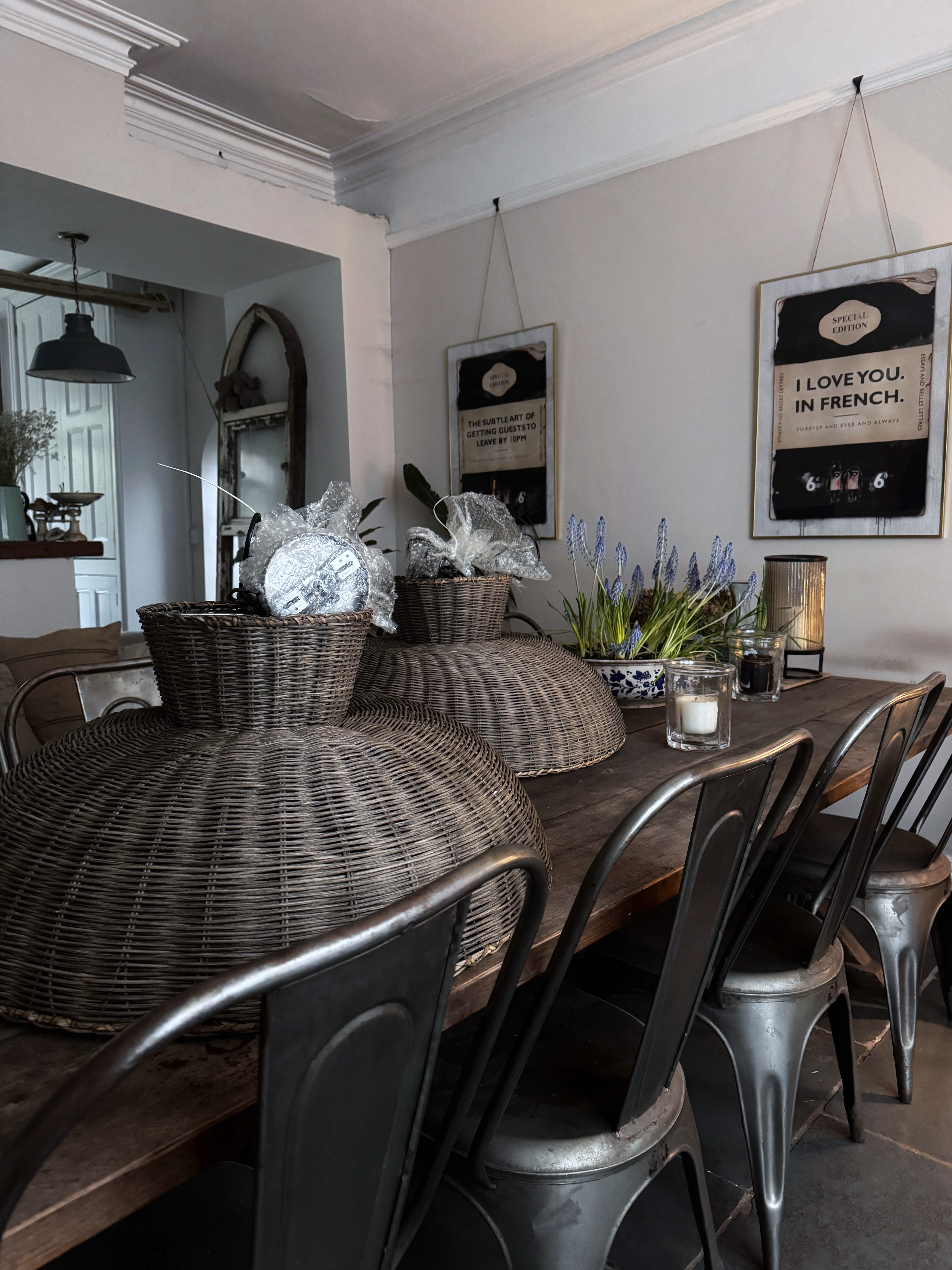 These oversized rattan ceiling pendants have just arrived, ready to be strung up in our hall. I first clapped eyes on them last Autumn, suspended low from the ceiling in a shop in Burnham Market, but when I reached out to them in the new year they have sadly closed. It turns out my irritating habit of snapping pics of things I spy on my travels pays dividends, for I was able to search the image and locate them elsewhere - hurrah! Since I’ve spent the best part of eighteen months with one eye out for just the right size and colour of rattan pendants to hang in the hallway, running front to back and cutting through the centre of the house, it feels like a big deal to be able to tick this box.