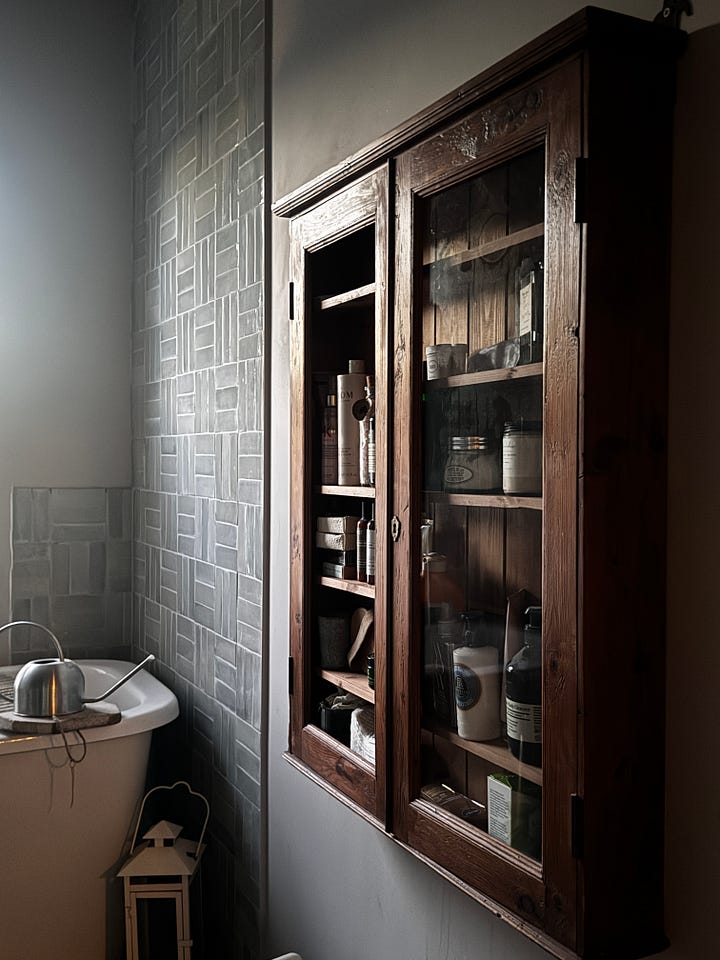 These cabinets, both new into the house this month, came by way of witching hour scrolling, putting some miles on my trusty Mini that’s larger than it’s name suggests to ferry them home, and following up their arrivals with elbow grease, varying grades of sandpaper and knowing where to source replacement glass. Bargains in their own right nonetheless and playing into my fondness for blending old with new.